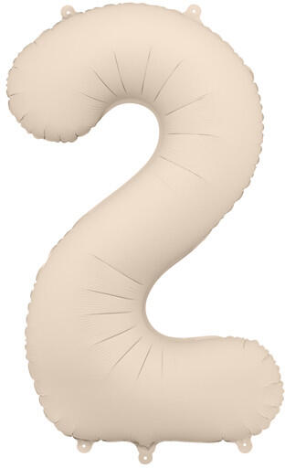 Matt fólia Balloon Number 2 világos bézs színben, felfújás előtti méret kb. 100 cm (39''), méret felfújás után kb. 86 cm (34"). Levegővel vagy héliummal felfújható. A készlet tartalmaz egy szívószálat. A léggömb önzáró. Horgokkal rendelkezik a dekorációkhoz való könnyű rögzítéshez.