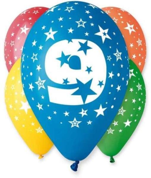 9 éves Happy Birthday léggömb, lufi 5 db-os (30, 5 cm)