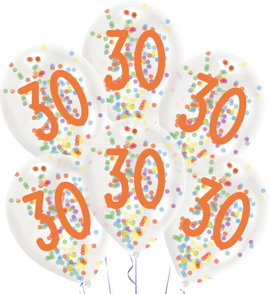 Amscan Happy Birthday 30 konfettivel töltött léggömb, lufi 6 db-os (DPA9909839)
