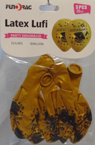 Ballagási gumi lufi arany , 30 cm-s (5 db)