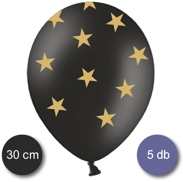 Belbal Fekete pasztel lufi, arany csillagokkal, 5 db/cs