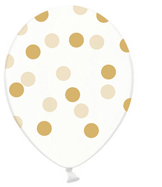 Átlátszó gumi lufi, arany pöttyökkel. 5 db/csomag.
