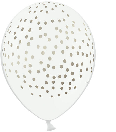 Átlátszó gumi lufi, arany pöttyökkel. 5 db/csomag.