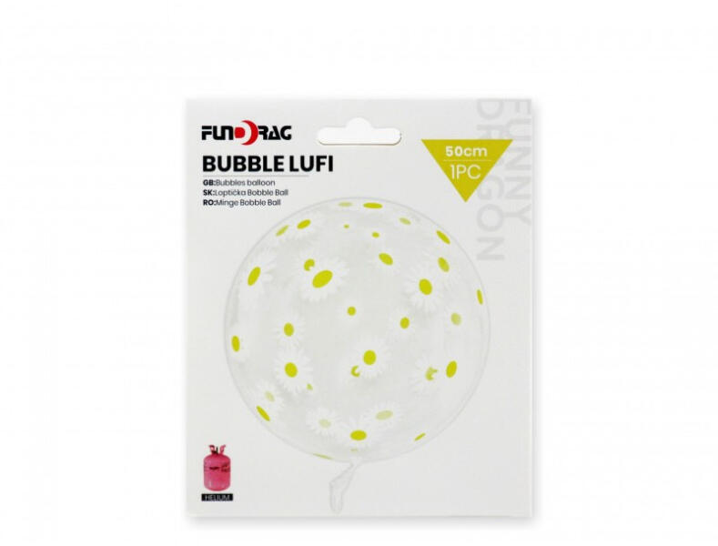 Margaréta mintázatú lufi. 50cmHéliummal és levegővel is fújható.