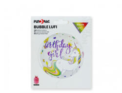 Birthday girl" feliratú lufi. Unikornis mintázatú. 50cmHéliummal és levegővel tölthető.