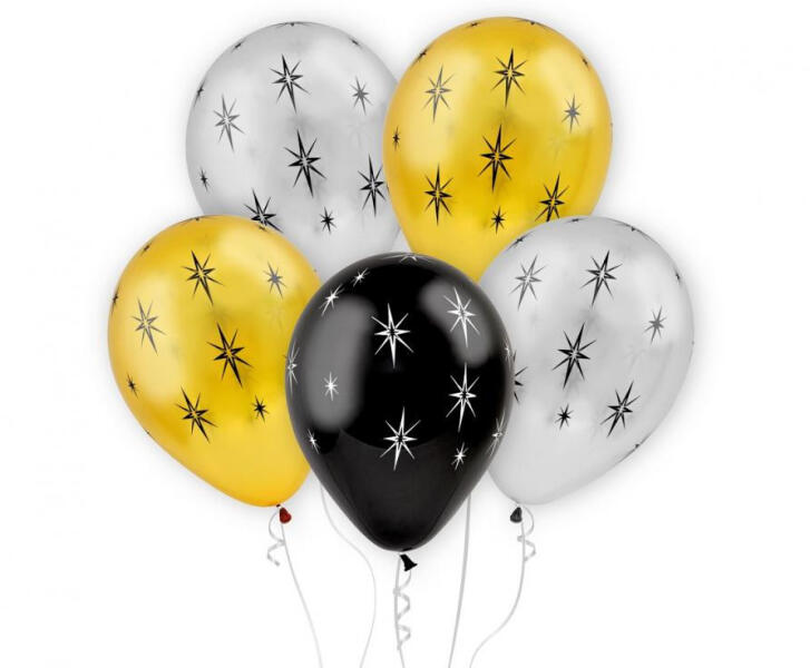 Csillagok Shiny léggömb, lufi 5 db-os 12 inch (30 cm) (MLG154740) - csucsajandek