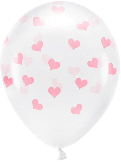 Clear Eco Balloons Hearts rózsaszín, ötoldalas nyomtatással, átmérője kb. 33 cm. (1 db / 6 db. )