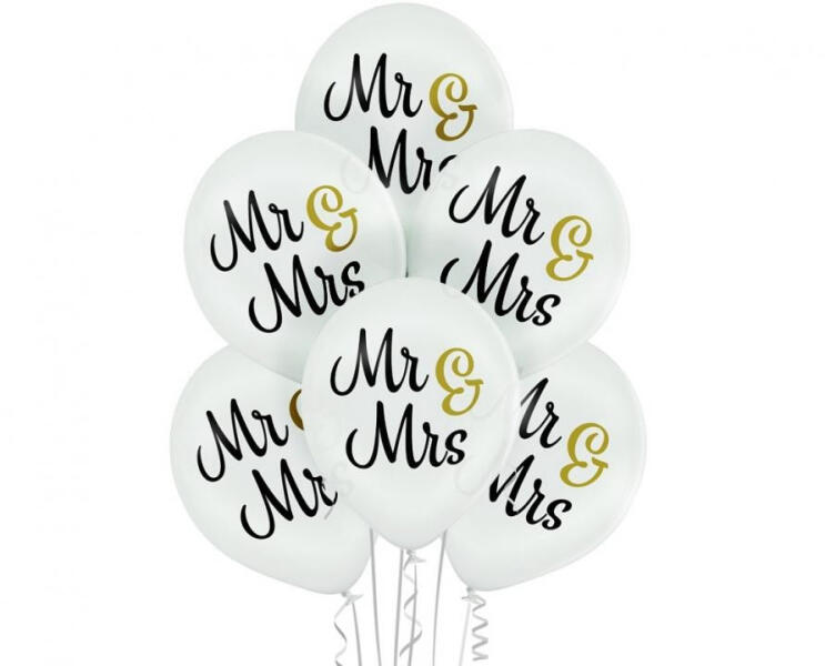 Esküvő Mr & Mrs léggömb, lufi 6 db-os 12 inch (30cm) (MLG003864) - csucsajandek
