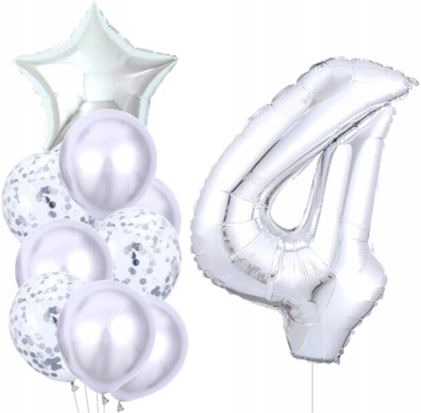 Ezüst Lufik 10db 4. Születésnapra Konfetti 4-es számALLEGRO