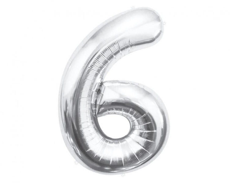 Silver, Ezüst 6-os szám fólia lufi 85 cm