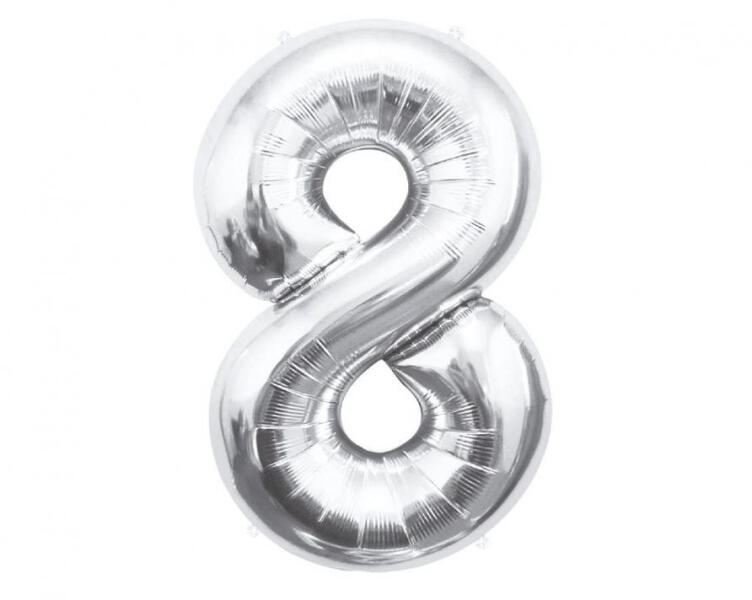 Silver, Ezüst 8-as szám fólia lufi 85 cm