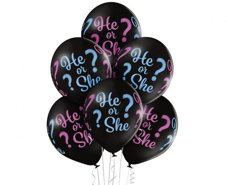 He or She, fiú vagy Lány léggömb, lufi 6 db-os 12 inch (30cm)