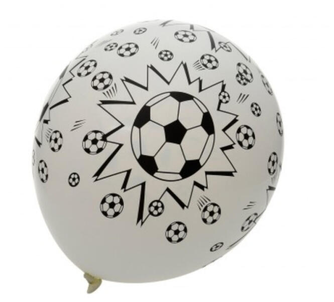 Lufi szett (5 db) – 30 cm-es fehér latex lufi focilabda mintával Dobd fel a focirajongók buliját ezzel a focilabda mintás lufi szettel ! A csomag 5 darab, 30 cm átmérőjű fehér latex lufit tartalmaz, amely tökéletes dekoráció születésnapra, sporteseményekre, focibajnokságokra vagy akár egy baráti meccsnézéshez. Strapabíró latex anyag
