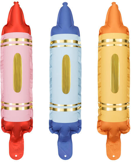 Foil balloons for garlands Crayons, mix of colors. Dimensions before inflation approx. 11x32.5 cm, dimensions after inflation approx. 7x30 cm. To be inflated with air. The set includes 3 pieces and a straw.