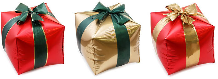 Fólia lufi Díszdobozok, vegyes színek, méretek felfújás előtt kb. 33,5 x 63 cm (13,4 x 25,2''), méretek felfújás után kb. 34 x 36 cm (13,6 x 14,4). Levegő és hélium felfújáshoz. A készlet 3 db léggömböt és egy szívószálat tartalmaz. (1 db / 3 db. )