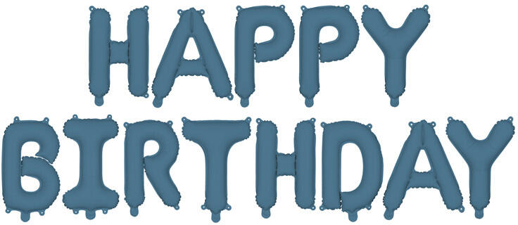 Matt fólia lufi Happy Birthday sötétkék színben, mérete kb. 340 x 35 cm (134 x 14''). Levegővel felfújni.