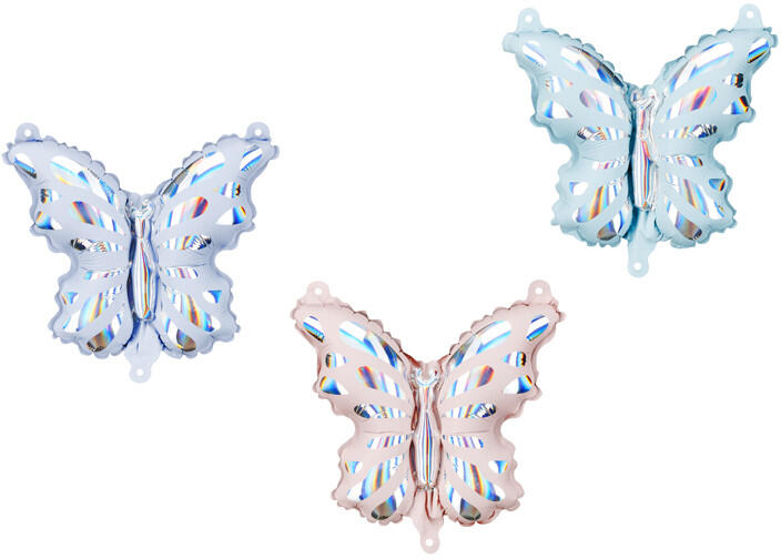 Fólia lufi koszorús pillangókhoz, vegyes színben. Méretek infláció előtt kb. 26,5 x 24 cm (10,4 x 9,4), méretek felfújás után kb. 19 x 23 cm (7,5 x 9 hüvelyk). Levegővel való felfújáshoz. 3 darabot tartalmaz. (1 db / 3 db. )
