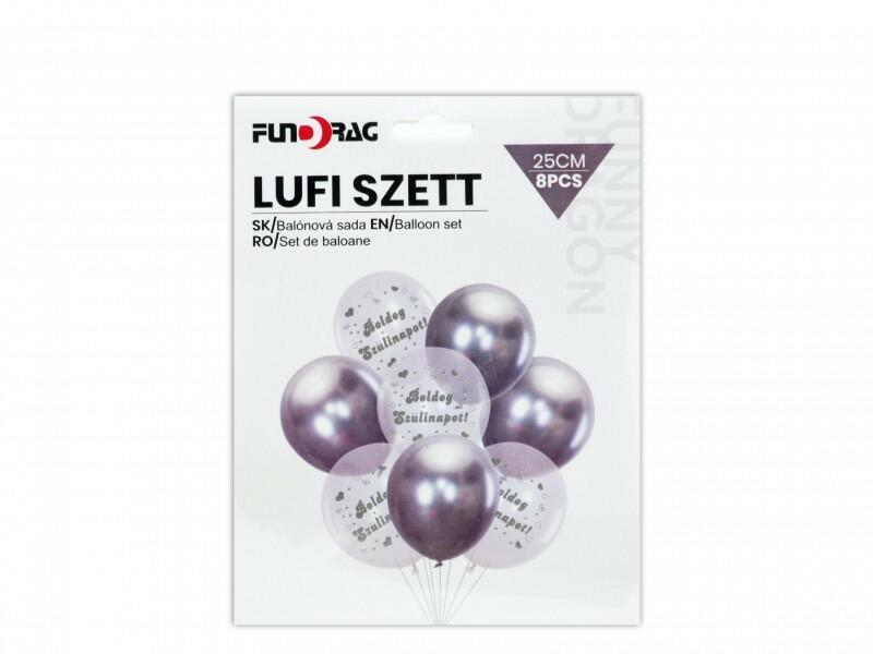 FunDrag Boldog szülinapot lufi szett ezüst 25 cm, 4+4 db/csomag