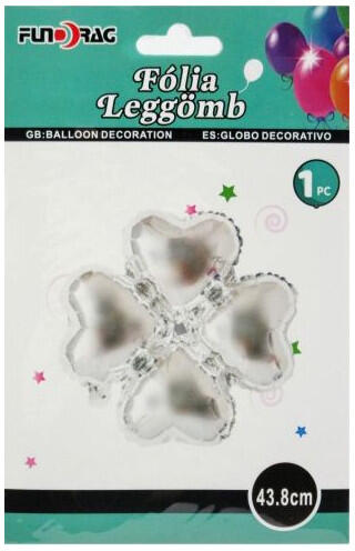 Funfrag fóliás lufi, ezüst színű, 4 levelű lóhere