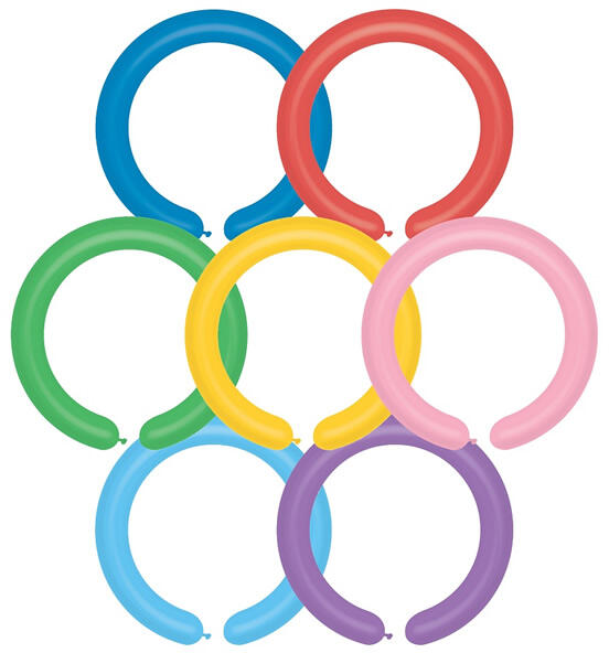 Cső alakú lufi, formázható, több színben, 100 darab/csomag. Felfújt állapotban szélessége 5 cm, hossza: 110 cm.