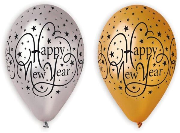 Gemar Happy New Year feliratos lufi csomag, arany-ezüst, 6 db-os (GS110/NY1)