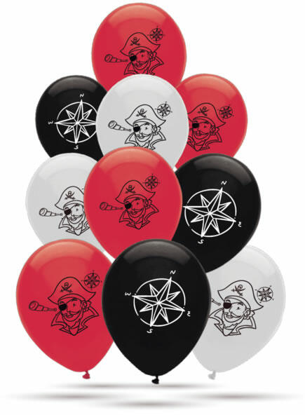 Nagyszerű léggömb vidám bulikra, kalóz partikra. A kalózos motívumok vidám hangulatot kölcsönöznek a bulikhoz. A csomag 10 db léggömböt tartalmaz. A léggömb héliumos és levegős fújásra is kiválóan alkalmas.