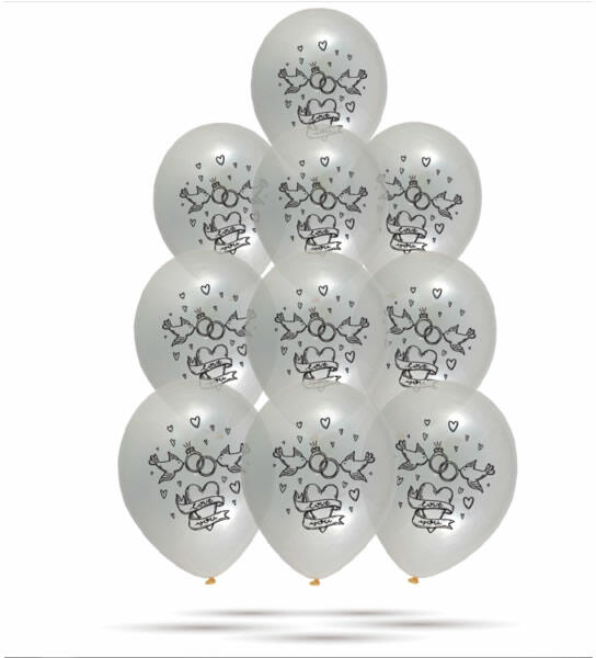 Globos Lufi, esküvőre, átlátszó, arany mintával 30 cm 10 db/cs