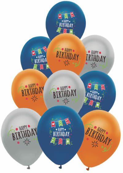 Globos Lufi, Happy Birthday, metál színes, party, 10 db/cs