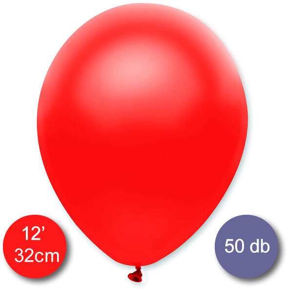 Piros lufi, metál színben, levegővel vagy gázzal való feltöltésre alkalmas átmérő: 32 cm. 50 db/csomag.