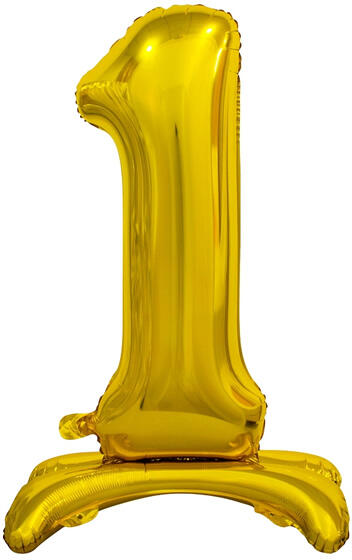 Fólia lufi, arany színben. 74 cm magas, kizárólag levegővel tölthető, a talpa miatt biztonságosan megáll az asztalon vagy a földön is.
