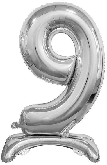 Fólia lufi, ezüst színben. 74 cm magas, kizárólag levegővel tölthető, a talpa miatt biztonságosan megáll az asztalon vagy a földön is.