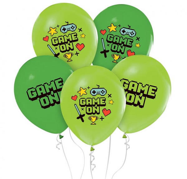 Zöld lufi, Game on felírattal. Átmérő: 30 cm.