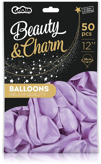 Levendula makaron színben, latex lufi, átmérő 30 centiméter, héliummal vagy levegővel tölthető. Egy csomagban 50 darab lufi.