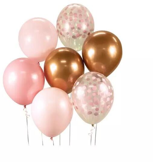 Rózsaszín, pöttyös és réz színű luficsokor a Beauty & Charm kollekcióból. Ideális választás, születésnapokra, ünnepségekre, esküvőkre vagy szilveszterre. A csomag 7 db léggömböt tartalmaz. Felfújt mérete: 30 cm