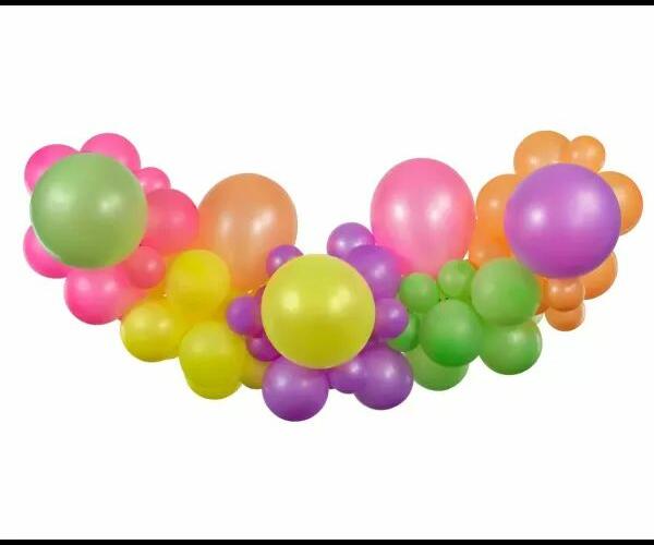 Stílusos lufigirland, ami menővé varázsolja bulikat. A lufik között neonszínű léggömbök találhatók. A füzér összesen 65 lufit tartalmaz, amelyek levegővel fújhatók fel. Léggömbök száma és felfújt mérete:- 30 db 13 cm átmérőjű lufi- 10 db 26 cm átmérőjű lufi- 25 db 33 cm átmérőjű lufiA szalag mérete: 300 cmAz elkészült füzér mérete: 200 x 50 x 70 cm
