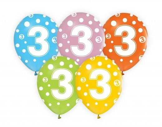 Mindegy, hogy 3 vagy 33 éves szülinaposról, esetleg évfordulóról van-e szó, ez a színes, fehér pöttyökkel és 3-as számmal dekorált luficsomag garantáltan feldobja majd az ünnepeltet vagy ünnepelteket. A szett 5 db lufit tartalmaz. Tökéletes választás a szülinapi zsúrra. A lufik felfújt mérete: 30 cm