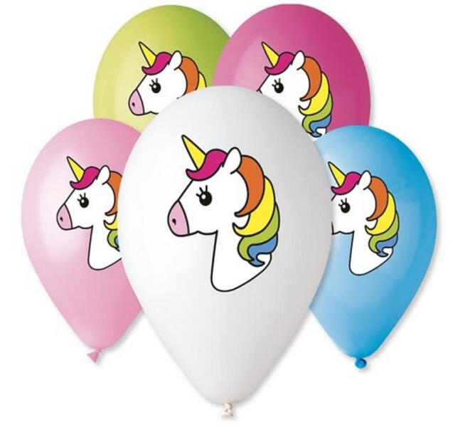 Unicorn Multicolor, Unikornis léggömb, lufi 5 db-os 12 inch (30cm)