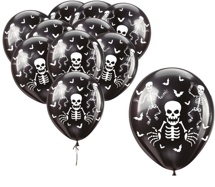 Latex lufi készlet - Csontváz 30 cm 10 db A csontvázak és denevérek motívumával ellátott latex lufik kísérteties hangulatot varázsolnak Halloween vagy horror témájú buliba ! Ezek a lufik nagyszerű kiegészítők a szoba dekorációjához, bejáratához vagy egy kísérteties lufi elrendezés részeként.