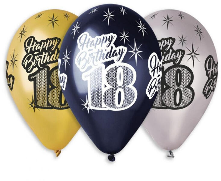 Happy Birthday 18 léggömb, lufi 5 db-os