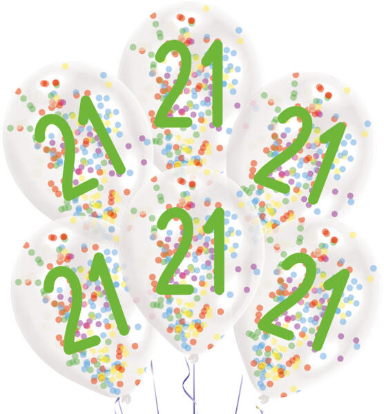 Happy Birthday 21 konfettivel töltött léggömb, lufi 6 db-os