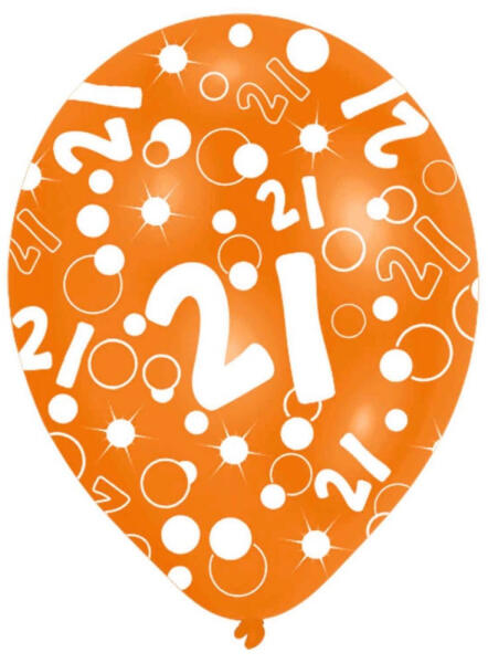 Happy Birthday 21 Orange léggömb, lufi 6 db-os 11 inch (27, 5cm) (DPA9908417) - nasivegyi