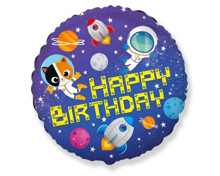 Happy Birthday Space, Űr fólia lufi 46 cm