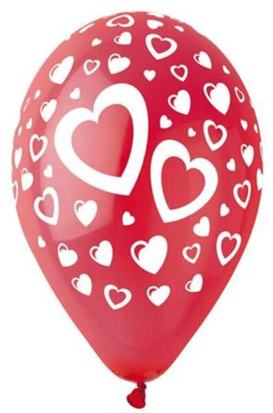 Léggömb, 30cm, piros szívek, 10db/cs (11-PRINTSZIVES01-45) - mystock