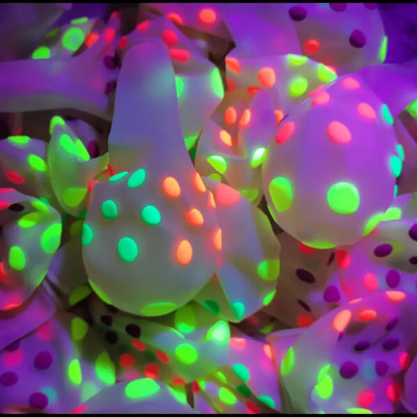 Lufi, átlátszó, neon pöttyös UV fényben világít, 12 db/cs