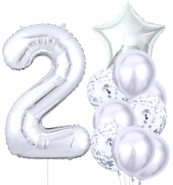 Lufik 10 db-os szett a második születésnapra, ezüst konfettivelALLEGRO