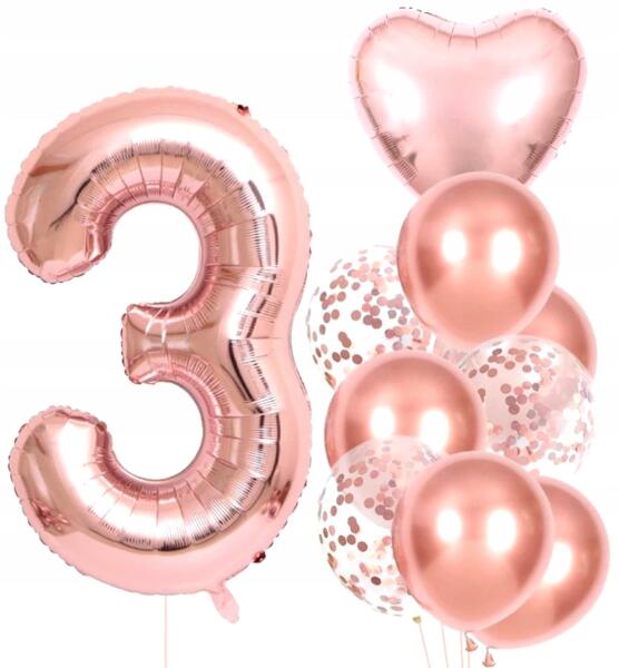 Lufik 10db harmadik születésnapra rózsaszín konfettiALLEGRO