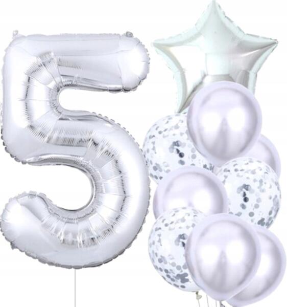Lufik 10db ötödik születésnapra Ezüst konfetti - allegro - 350 Ft