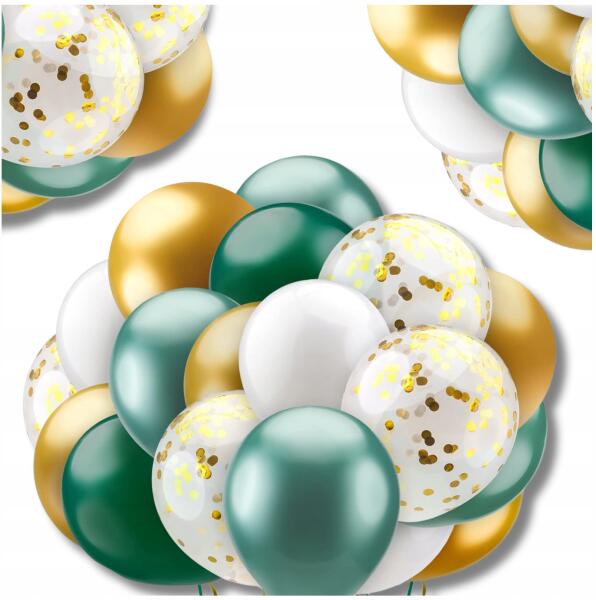Lufik Zöld Arany 60db Esküvő Lakodalom Lufi szett áldozás konfetti SzületésnapALLEGRO