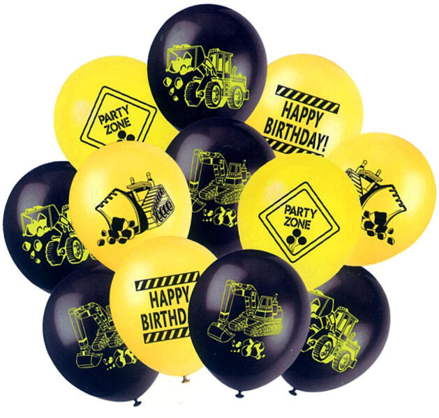 Szülinapi lufik különböző munkagépes és építkezéssel kapcsolatos mintákkal fekete és sárga színben. A gyerekek, de főleg a fiúk imádják az építkezéseket és az ott látható óriás gépeket. Ezzel a luficsomaggal egy plusz örömöt okozhatsz nekik. Mérete: 30cm.