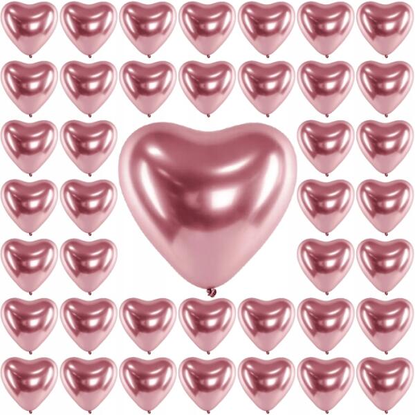 Party Deco Lufi 30cm glossy nagy szív rózsaszín arany 50dbALLEGRO